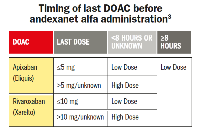 Prospective open-label clinical trial to evaluate the efficacy and safety of andexanet alfa patients who require urgent surgery that have been anticoagulated with the FXa activated factor X inhibitors. Additional online searches via PubMed Google Scholar and Lexicomp were conducted for both prescribing. The safety and scientific validity of this study is the responsibility of the study sponsor and investigators.