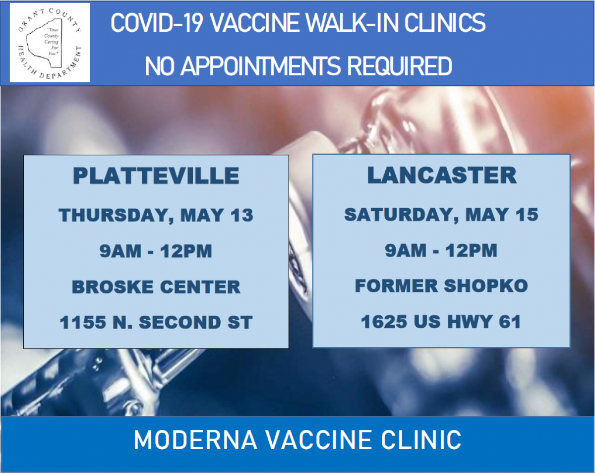Walk In Covid 19 Vaccine Clinics To Be Held In Platteville On May 13 And Lancaster On May 15 Platteville Wisconsin