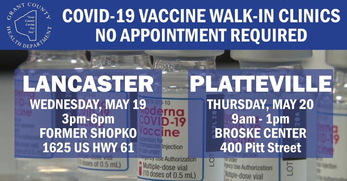 Walk In Covid 19 Vaccine Clinics To Be Held In Lancaster On May 19 And Platteville On May 20 Platteville Wisconsin