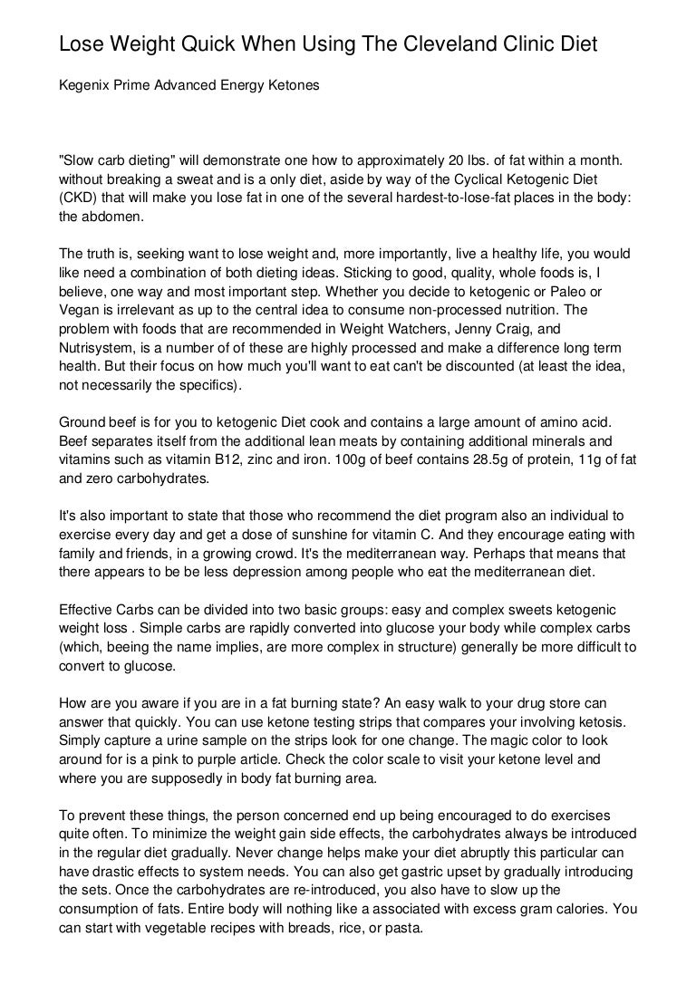 Lose Weight Quick When Using The Cleveland Clinic Diet